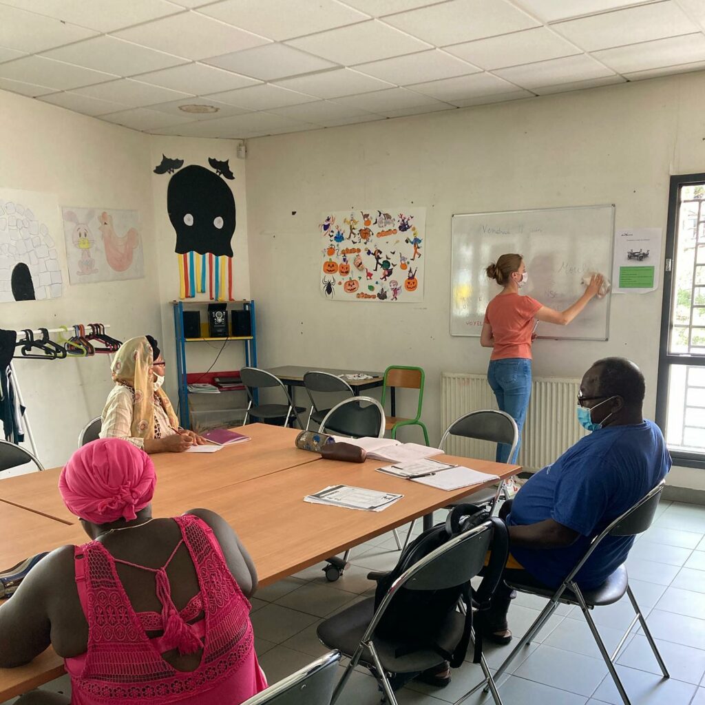 Accès aux droits, cours soicolinguistiques, démarches administratives, aide à la recherche d’emploi et formation, café débats et solidarités.